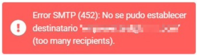 Quiere decir que cuando intentes enviar un email de más de 40 destinatarios recibirás el siguiente error: "Error SMTP (452) - Too many recipients", y esto te ocurrirá tanto al enviar desde webmail como si estás utilizando una app para revisar tu correo.