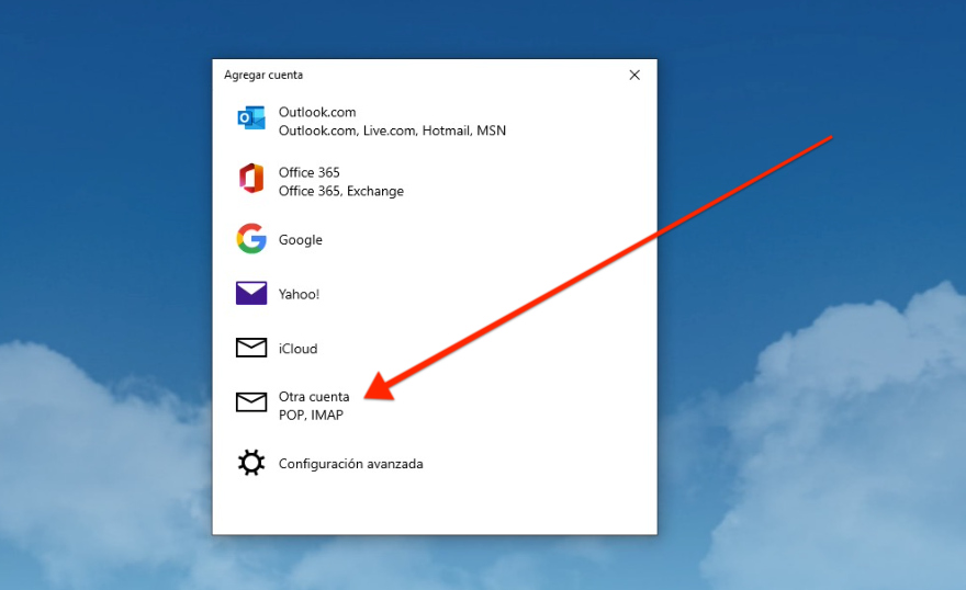 - Selecciona Otra cuenta POP/IMAP.