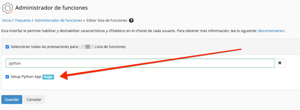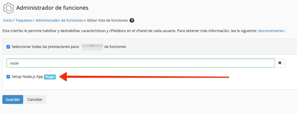 Si estamos editando una lista de funciones ya existente, seleccionamos "Setup Node.js App" y "Setup Python App". - Guarda los cambios.
