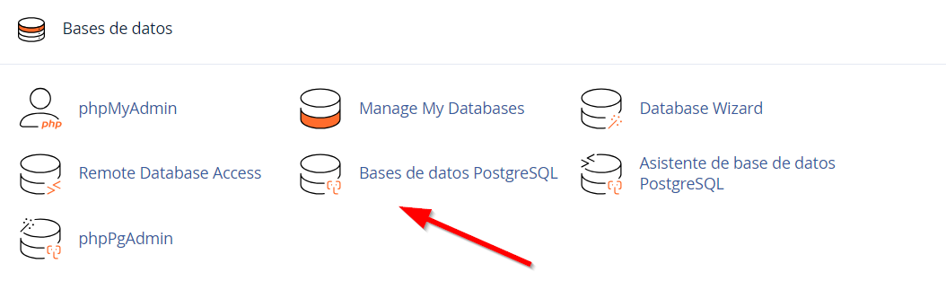 - Dentro de apartado de Bases de datos, ve a PostgreSQL.