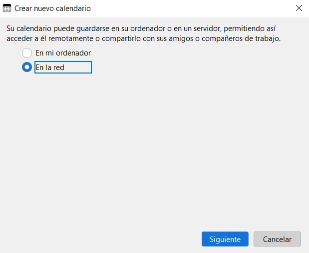 - En la app de Thunderbird, ingresa a Calendario y luego a Nuevo calendario.