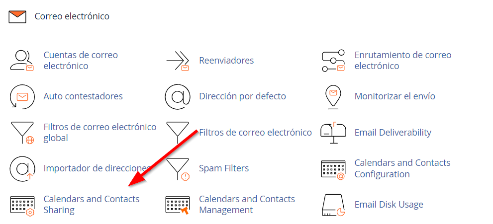 En cPanel es posible compartir los calendarios y las agenda de contactos entre cuentas de mail locales. Para ello sigue estos pasos: