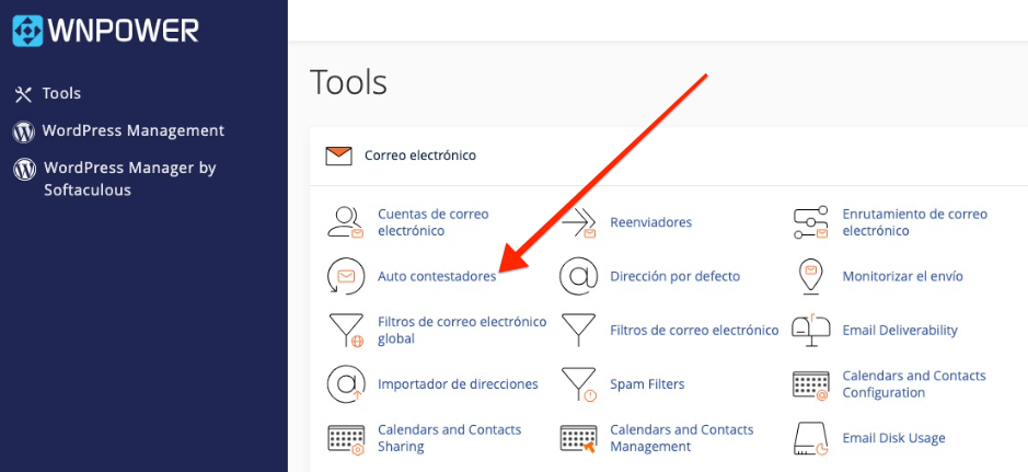 - Ve a Auto contestadores dentro del apartado de Correo electrónico.
