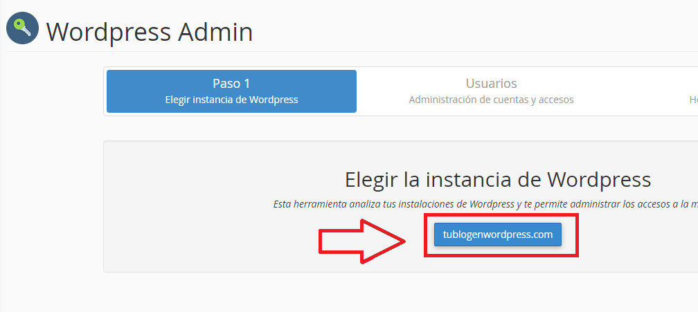 - Haz clic sobre la instalación de WordPress sobre la cual quieras trabajar.