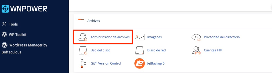 - Ve al Administrador de Archivos. Lo encontrarás dentro de la sección Archivos.