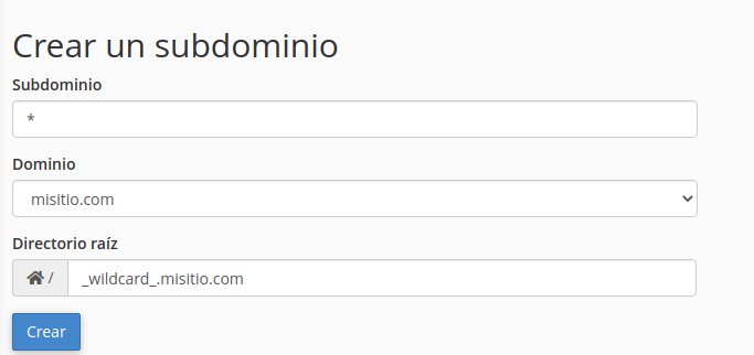 - Ve a Subdominios y agrega el subdominio Wildcard de esta forma: