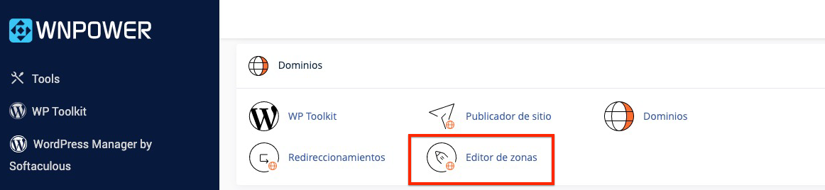 - Vuelve al menú principal de cPanel haciendo clic en el logo de WNPower.