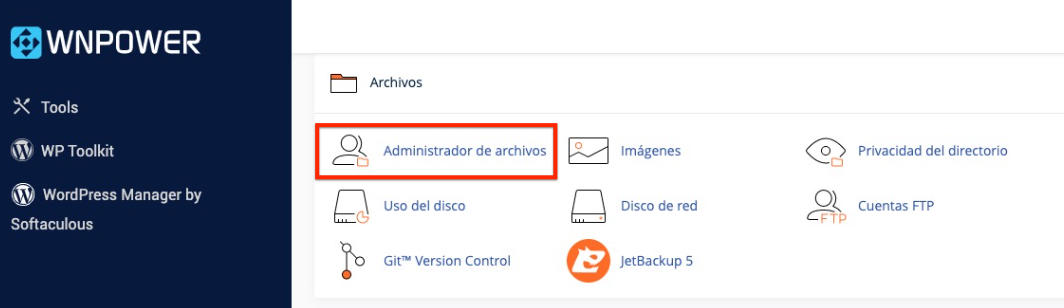 - Accede al panel de control cPanel de tu hosting con WNPower. Si no sabes cómo revisa esta otra guía.