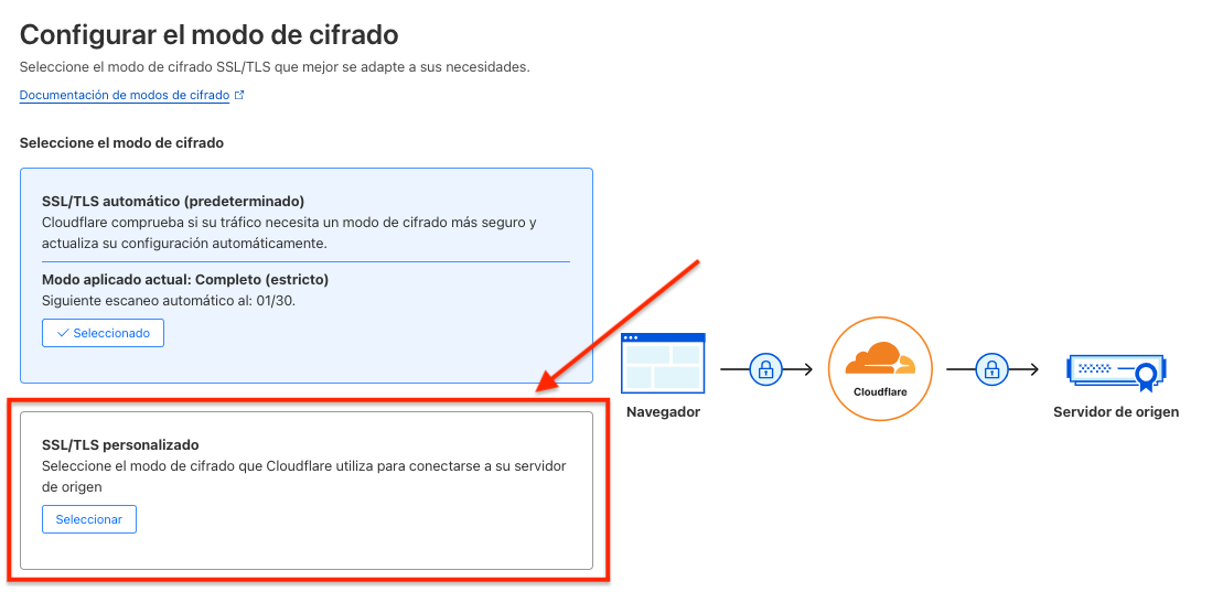 - Selecciona el recuadro SSL/TLS personalizado.