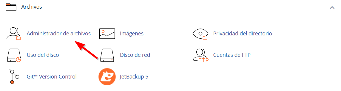 Accede a cPanel y ve al Administrador de archivos dentro del apartado de Archivos.