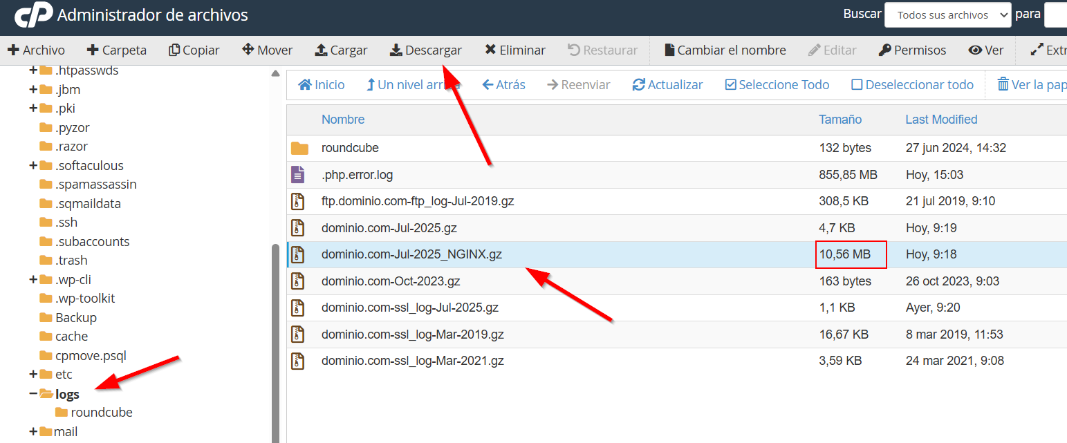 Cómo descargar los logs en cPanel