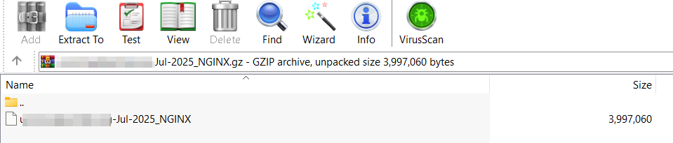 - Ingresa a la carpeta "logs" y selecciona el que termina en "-NGINX" (usualmente es el que más peso tiene). Luego presiona el botón Descargar.