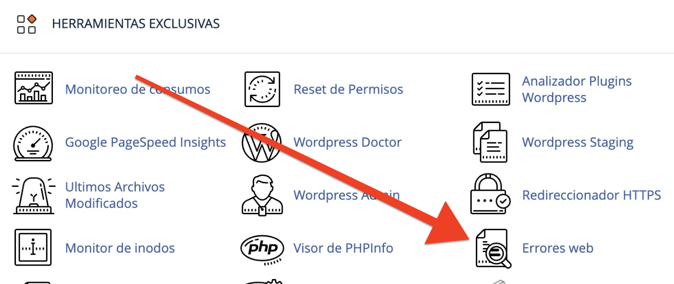 - Ve a la herramienta Errores web dentro de Herramientas exclusivas.